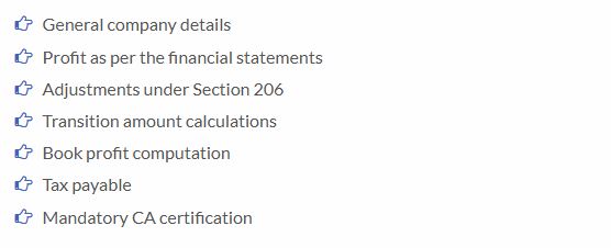 The structure resembles a Minimum Alternate Tax (MAT)-style computation procedure, ensuring book profits are aligned with statutory adjustments.