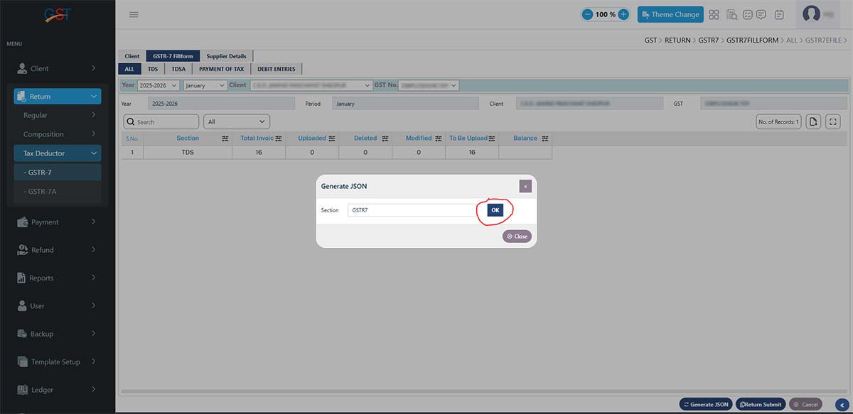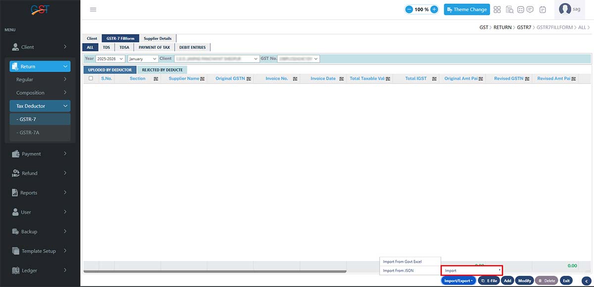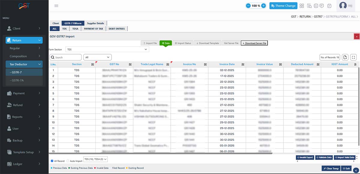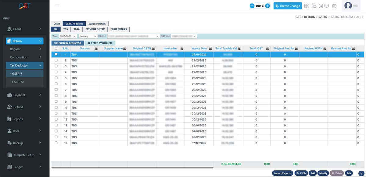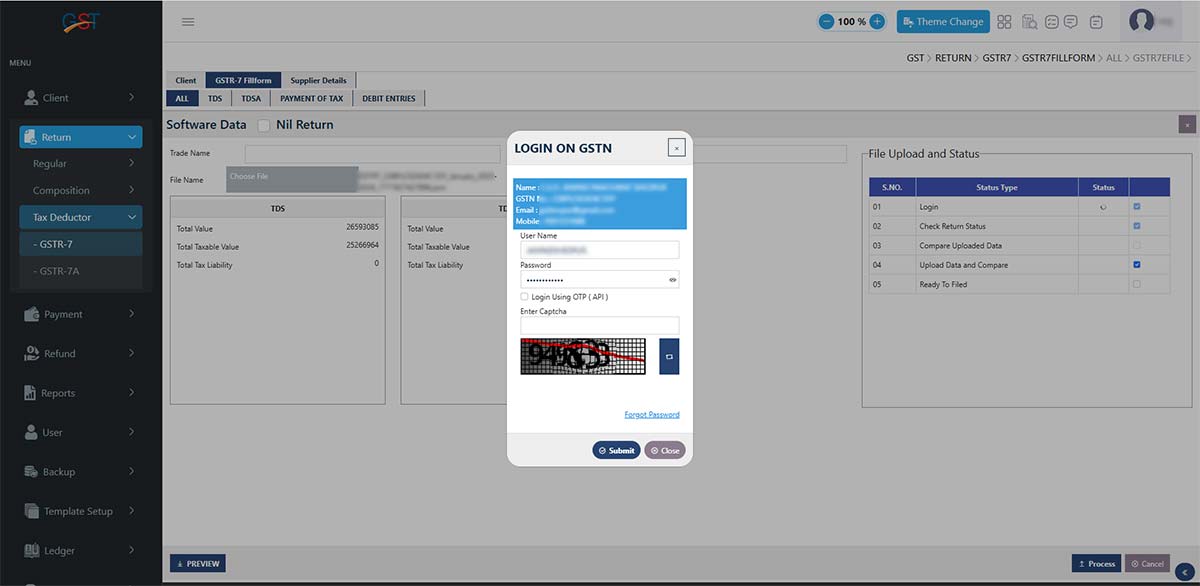 Gen GST Return Filing software version 2.0 is capable of unlimited client return filing, billing, and GST E-Waybill solutions. The software provides multiple features in the GSTR 7 forms, including details of TDS (Tax Deduction at Source) along with complete enterprise details.