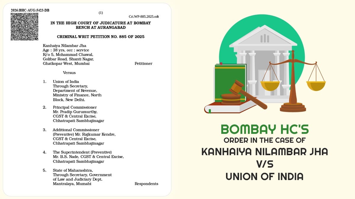Jha, GST officers took him from Mumbai to Chhatrapati Sambhajinagar (formerly Aurangabad) on June 17, 2025, without issuing any summons or arrest memo, and formally arrested him only on June 21 concerning alleged tax fraud. He accused the authorities of breaching his constitutional rights.