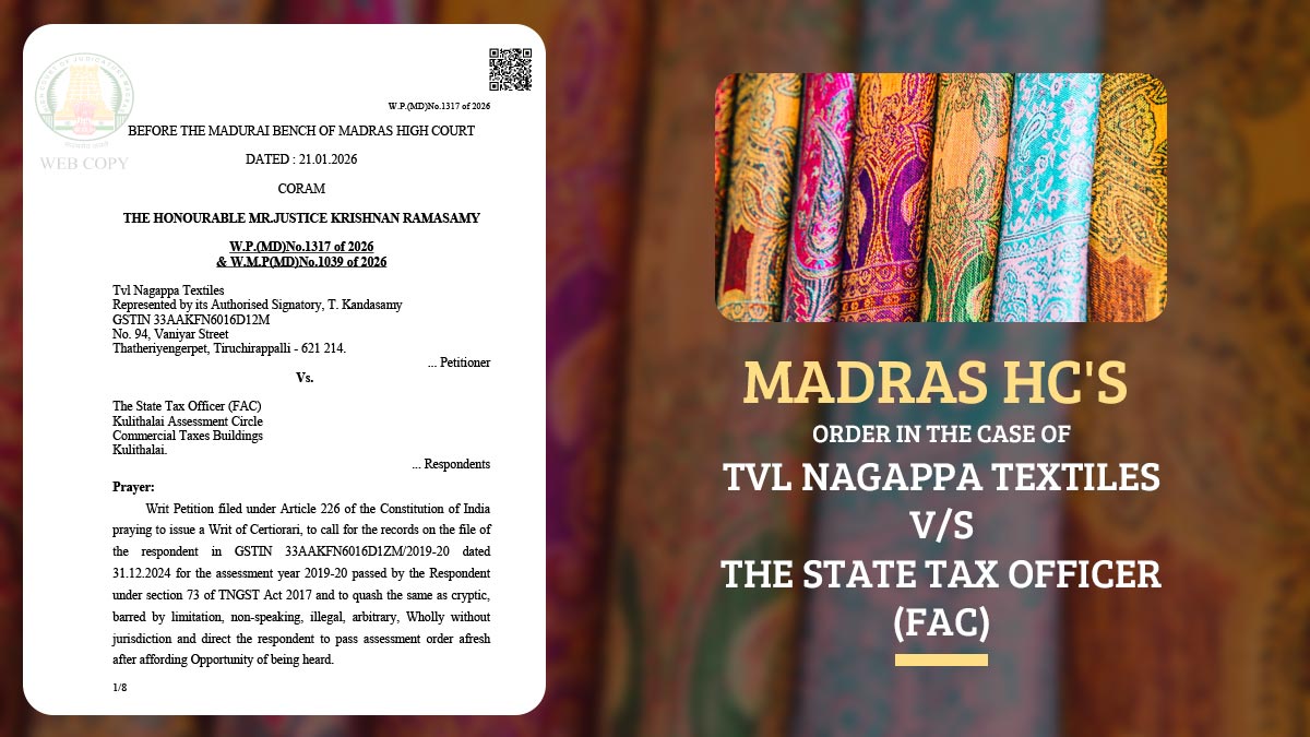 Madras HC's Order in The Case of Tvl Nagappa Textiles vs. The State Tax Officer (FAC)