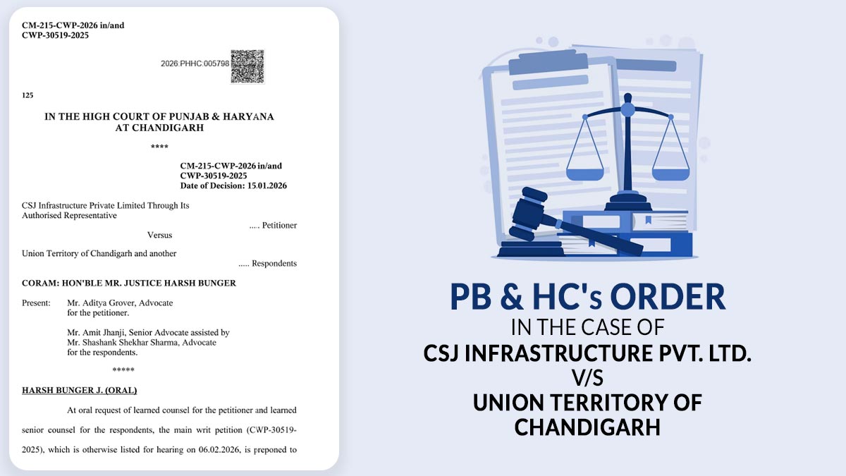 PB & HC's Order In the Case of CSJ Infrastructure Pvt. Ltd. vs. Union Territory of Chandigarh